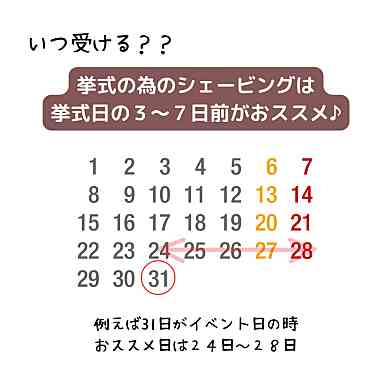 挙式のためのシェービングは、【挙式日の3日から1週間前】にお受けください